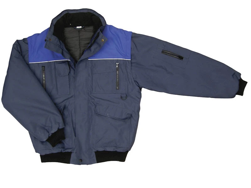 Cintura y puños tejidos. Bolsillos internos y externos.